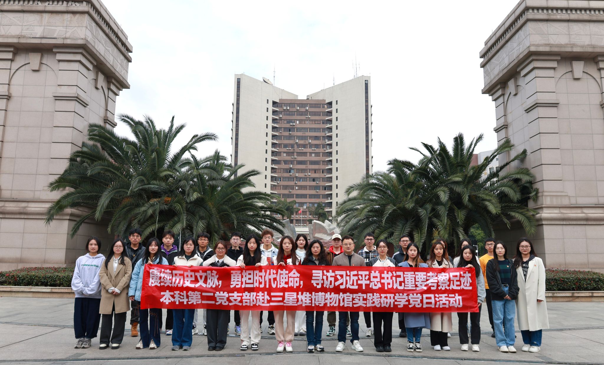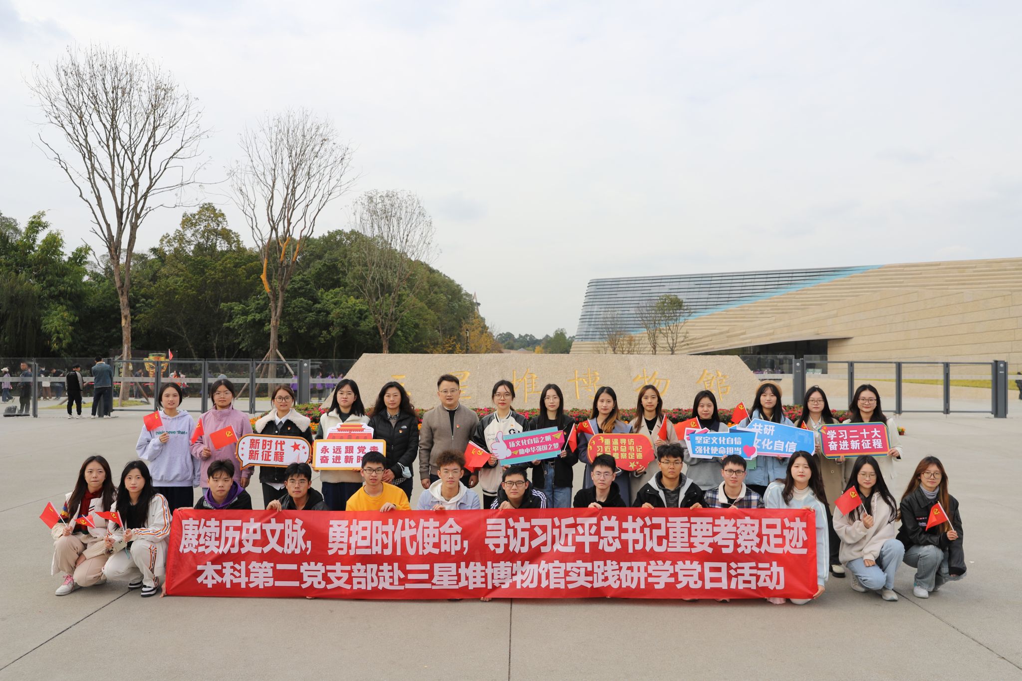 本科第二党支部24名党员、入党积极分子在学院党务秘书李洪辉、本科第二党支部书记陈建奇的带领下,前往广汉市三星堆博物馆,开展“赓续历史文脉,勇担时代使命,寻访习近平总书记重要考察足迹——三星堆博物馆实践研学”主题党日活动。