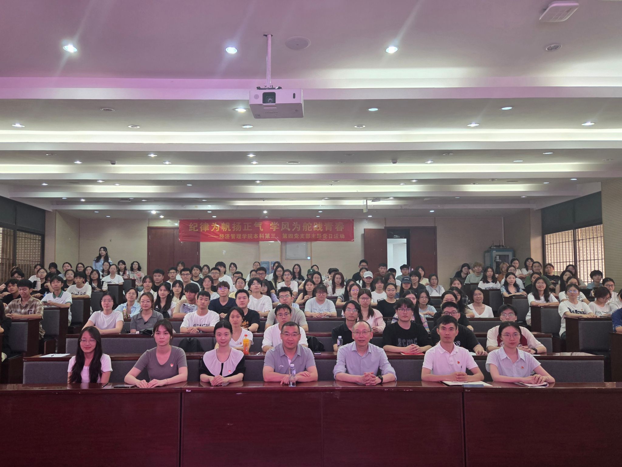 本科第三、第四党支部联合开展“纪律为帆扬正气,学风为舵践青春”主题党日活动。