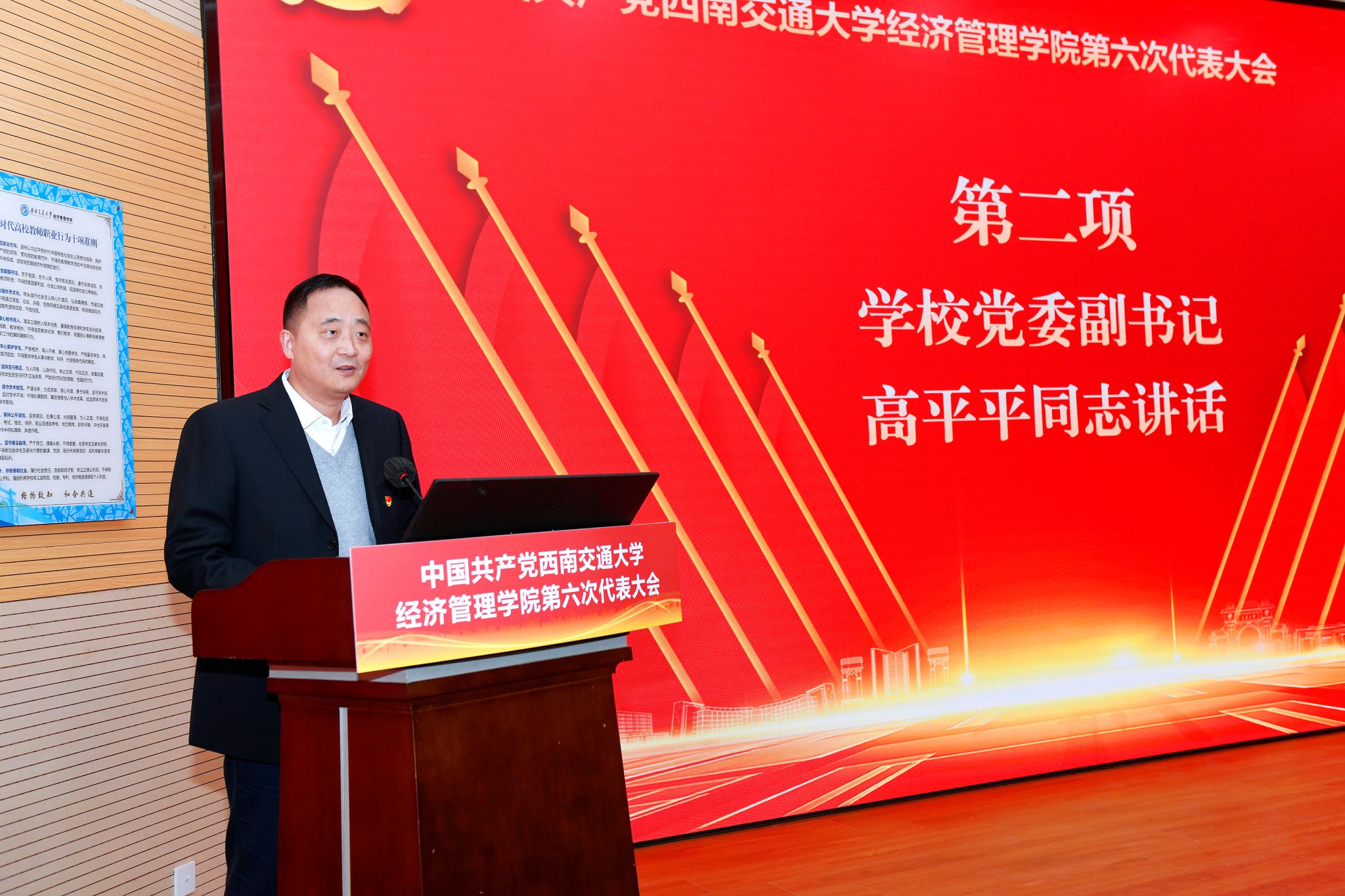 大会在庄严的国歌声中开幕。校党委副书记高平平对大会的召开表示热烈祝贺。他指出,过去的五年,学院党委坚持以习近平新时代中国特色社会主义思想为指导,牢记“以学生为中心、以教师为主体”的办学理念,锐意进取、扎实工作,推动学院各项事业取得长足进步。高平平代表学校党委对即将产生的新一届学院党委提出三点希望:一是坚持党的全面领导,以坚实政治保障引领学院发展;二是落实立德树人根本任务,以卓越人才培养彰显育人初心;三是聚焦内涵式发展,以服务国家战略提升办学水平。他希望新一届学院党委团结带领全院党员和师生员工,以务实奋进的姿态、开拓创新的精神,持续推动学院各项事业迈向新台阶,为学校加快建设一流大学作出新的更大的贡献。