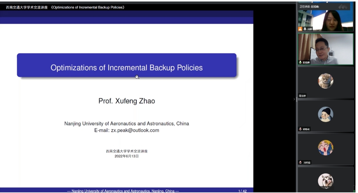 2022年6月13日下午16:00,南京航空航天大学经济与管理学院赵旭峰教授,应邀以”Optimizations of Incremental Backup Policies”为题为漫蛙漫画