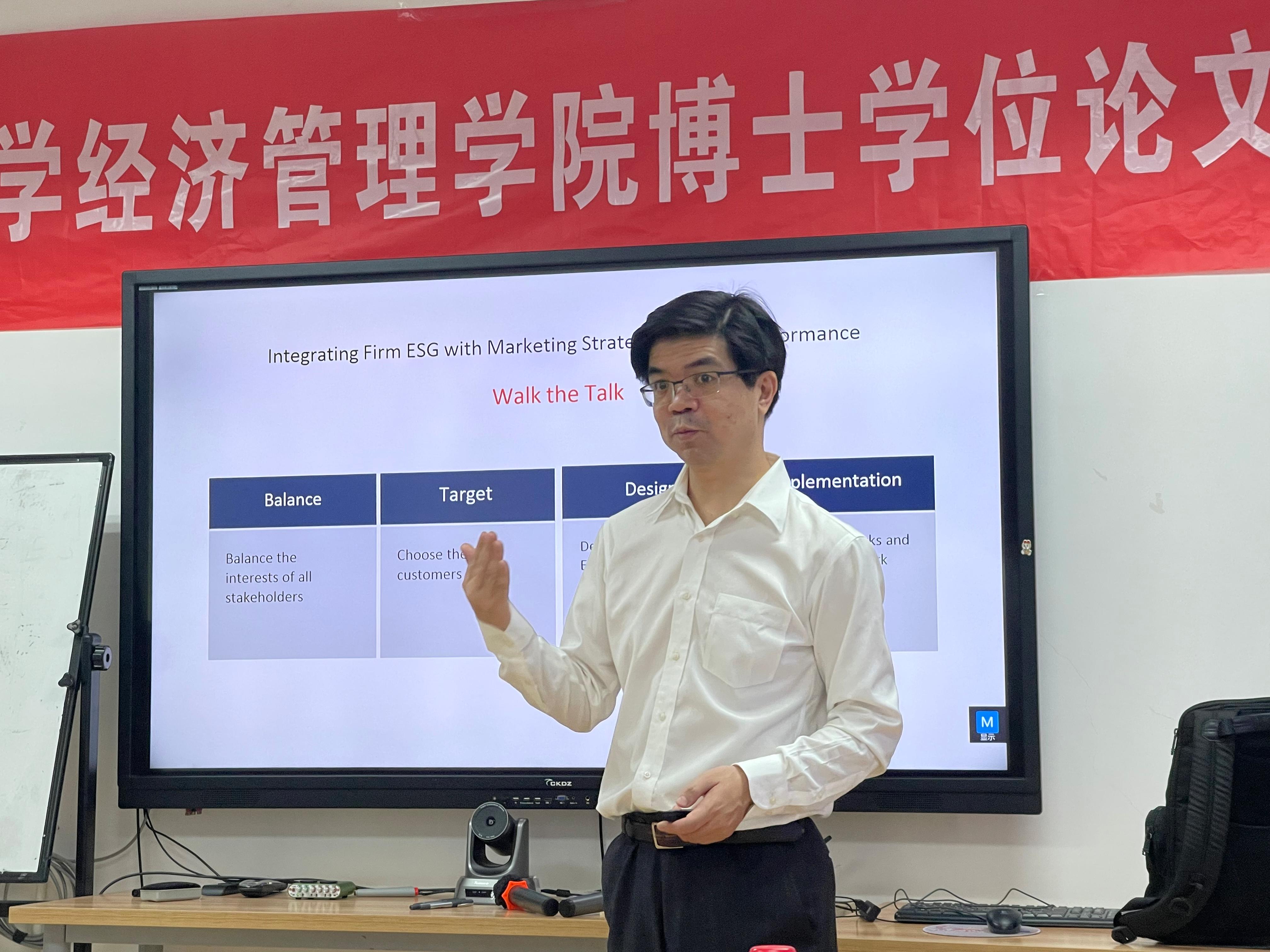 师生进行题为“ESG下的营销策略”学术报告。本次学术活动由学院市场学系蒋玉石教授主持,学院部分老师和同学参与了此次学术活动,学院副院长聂佳佳教授对杨志林教授的学术成果进行了介绍,同时对杨教授的到来表示热烈的欢迎和感谢。