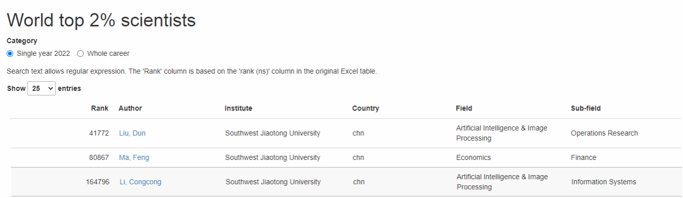 2023年10月4日,斯坦福大学John P. A. Ioannidis教授团队发布了《第六版全球前2%顶尖科学家榜单》(World’s Top 2% Scientists),并在Elsevier旗下Mendeley Data发布(October 2023 data-update for "Updated science-wide author databases of standardized citation indicators")。本次统计数据时间节点为1960-2023年,共分为22个科学领域和176个子方向。每位科学家被划分到一个领域和2个子方向中。