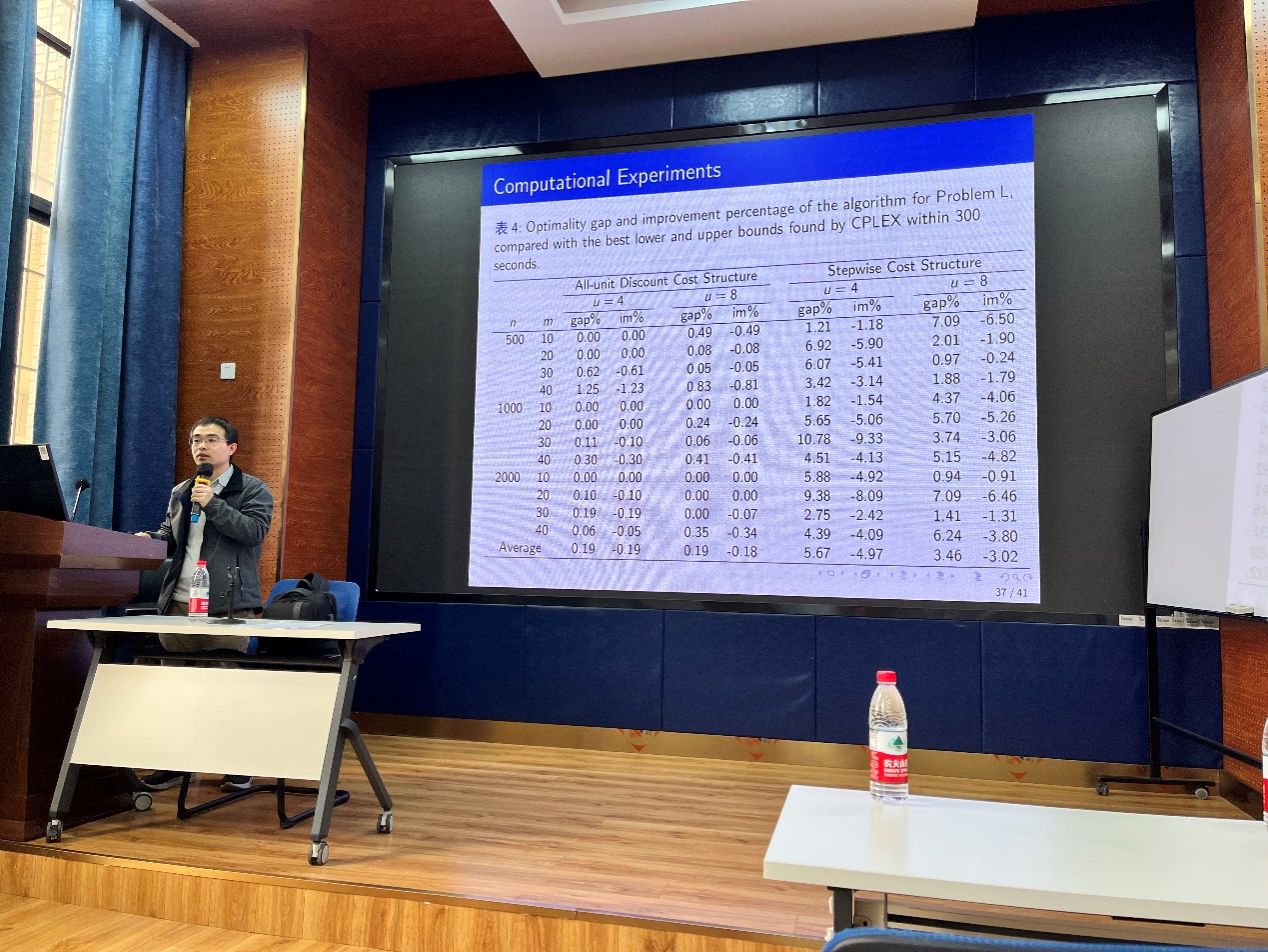 为学院报师生分享题为“基于非线性费用函数下多运输模式的订单匹配问题”的学术讲座。本次学术活动由学院副院长聂佳佳教授主持,学院部分教师及研究生参加了此次学术活动。