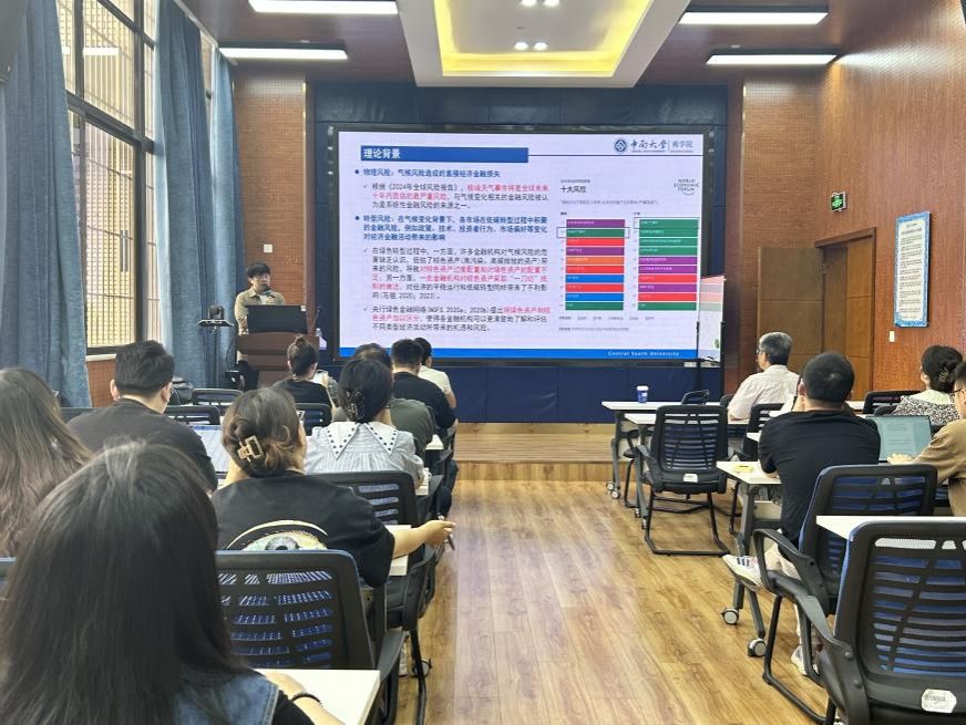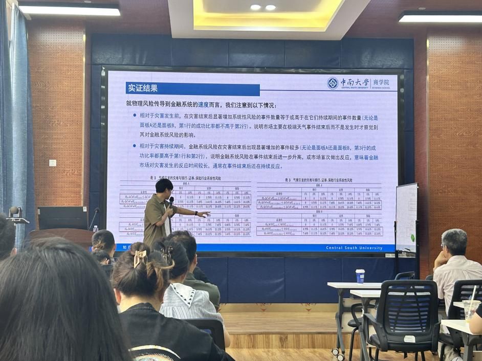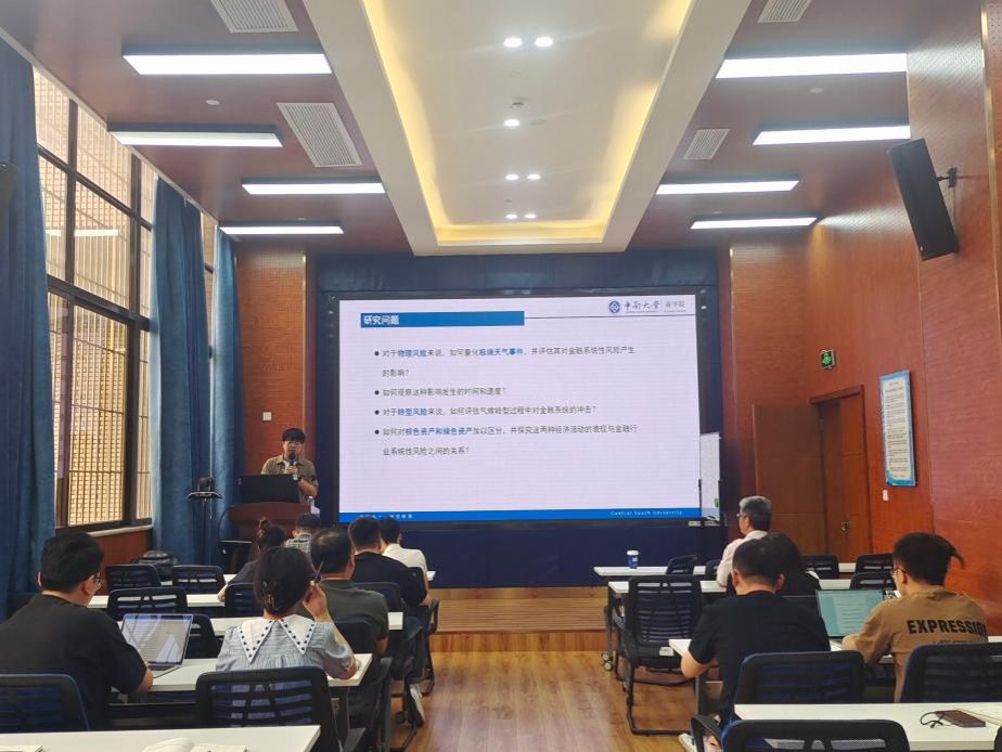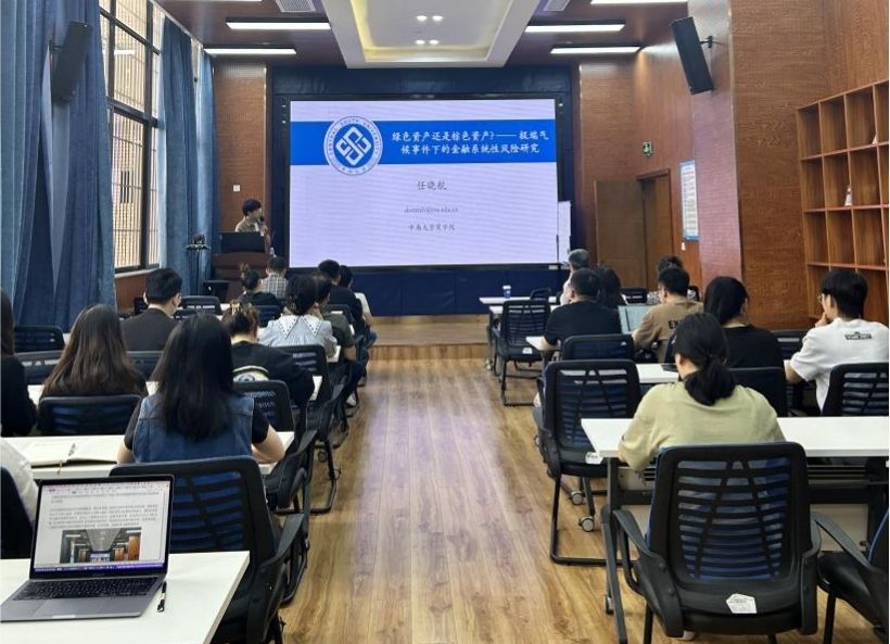 师生作题为“绿色资产还是棕色资产?——极端气候事件下的金融系统性风险研究”的学术讲座。此次学术活动由学院马锋副教授主持,学院部分教师及研究生参加此次讲座。马锋副教授对任晓航副教授的学术成果进行了介绍,并对他的到来表示热烈的欢迎与感谢。