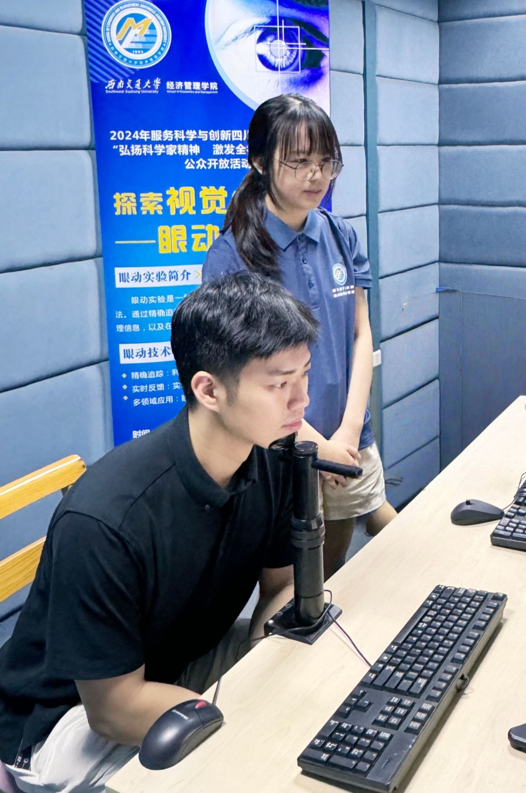 在公众开放活动期间,服务科学与创新四川省重点实验室还在其中的电生理实验室开放了眼动实验。数十位同学及社会人士报名参与了实验。通过参与实验,他们了解到眼动实验具有精确追踪和实时反馈的特点,眼动研究在心理学、认知科学、人机交互等领域均有广泛的应用。