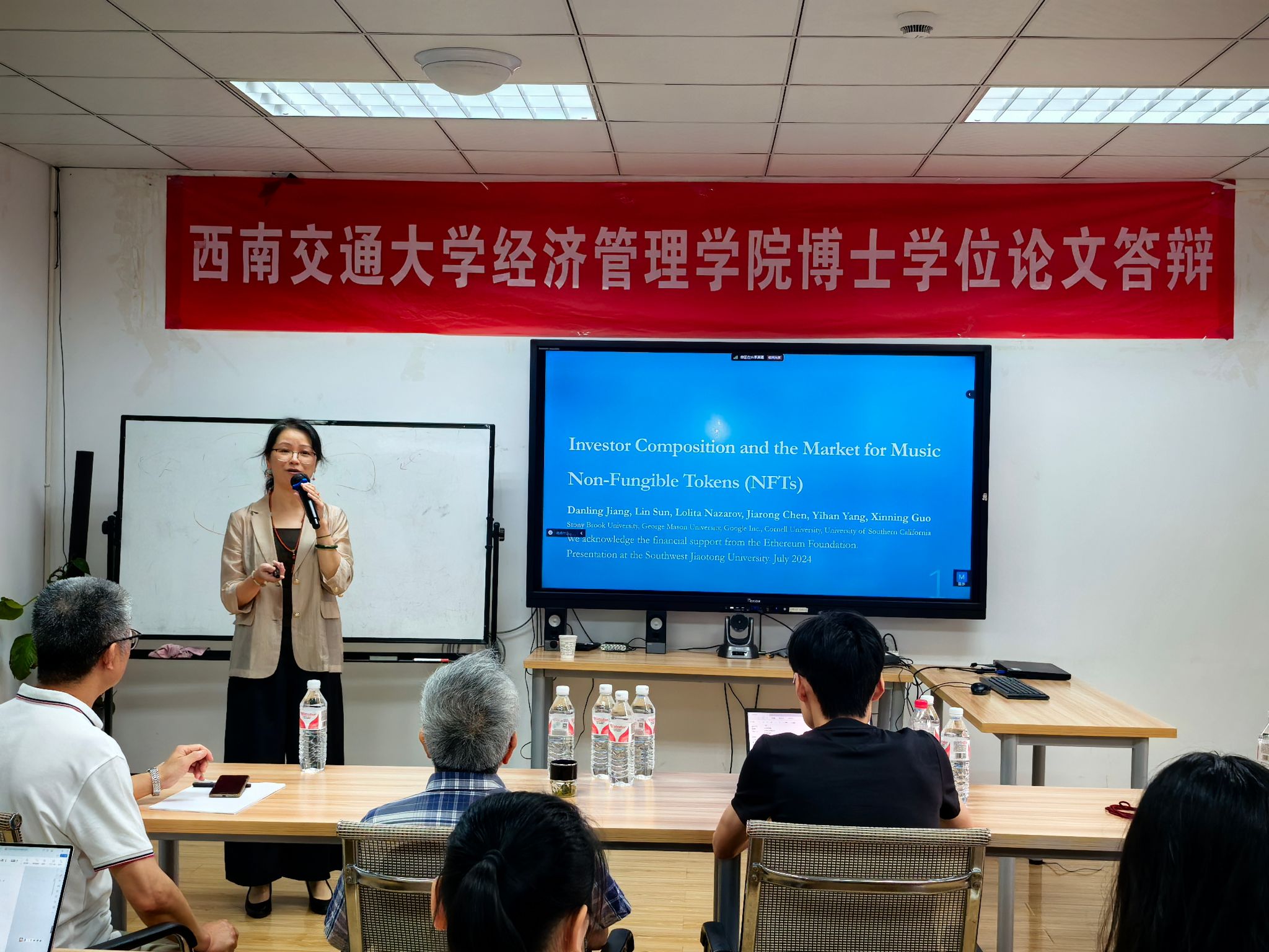 开展题为“Investor Composition and the Market for Music Non-Fungible Tokens (NFTS)”的学术报告,马锋副院长主持了此次学术活动,学院金融与财务学系黄登仕教授、朱宏泉教授等教师及研究生参加了此次活动,马锋副院长介绍了蒋丹凌教授的学术背景及研究成果,并对蒋丹凌教授回校表示热烈的欢迎。