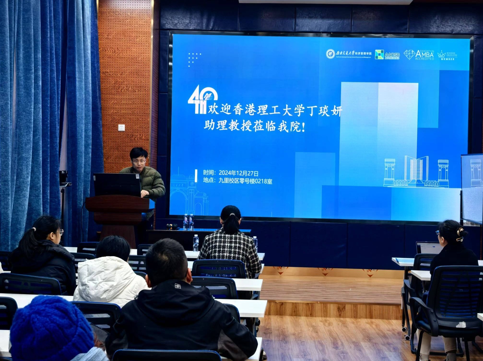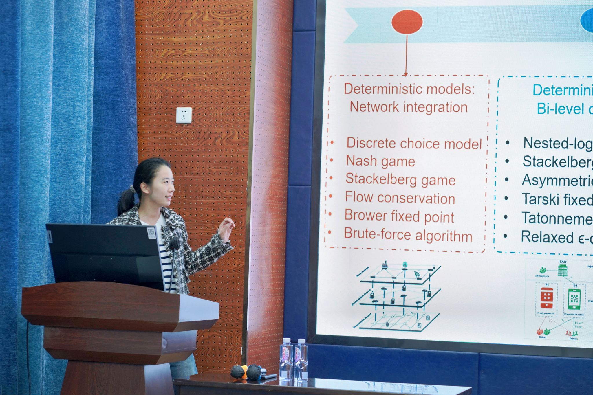 首先,副院长马锋对丁琰妍博士的学术成果进行了介绍,并对她的到来表示热烈欢迎。丁琰妍博士对本次研究的背景和思路作出了详细的介绍,她针对能源与交通耦合系统中的网络优化与平台定价策略进行深入研究,探讨了能源系统与交通系统互相作用下的四种不同情形。