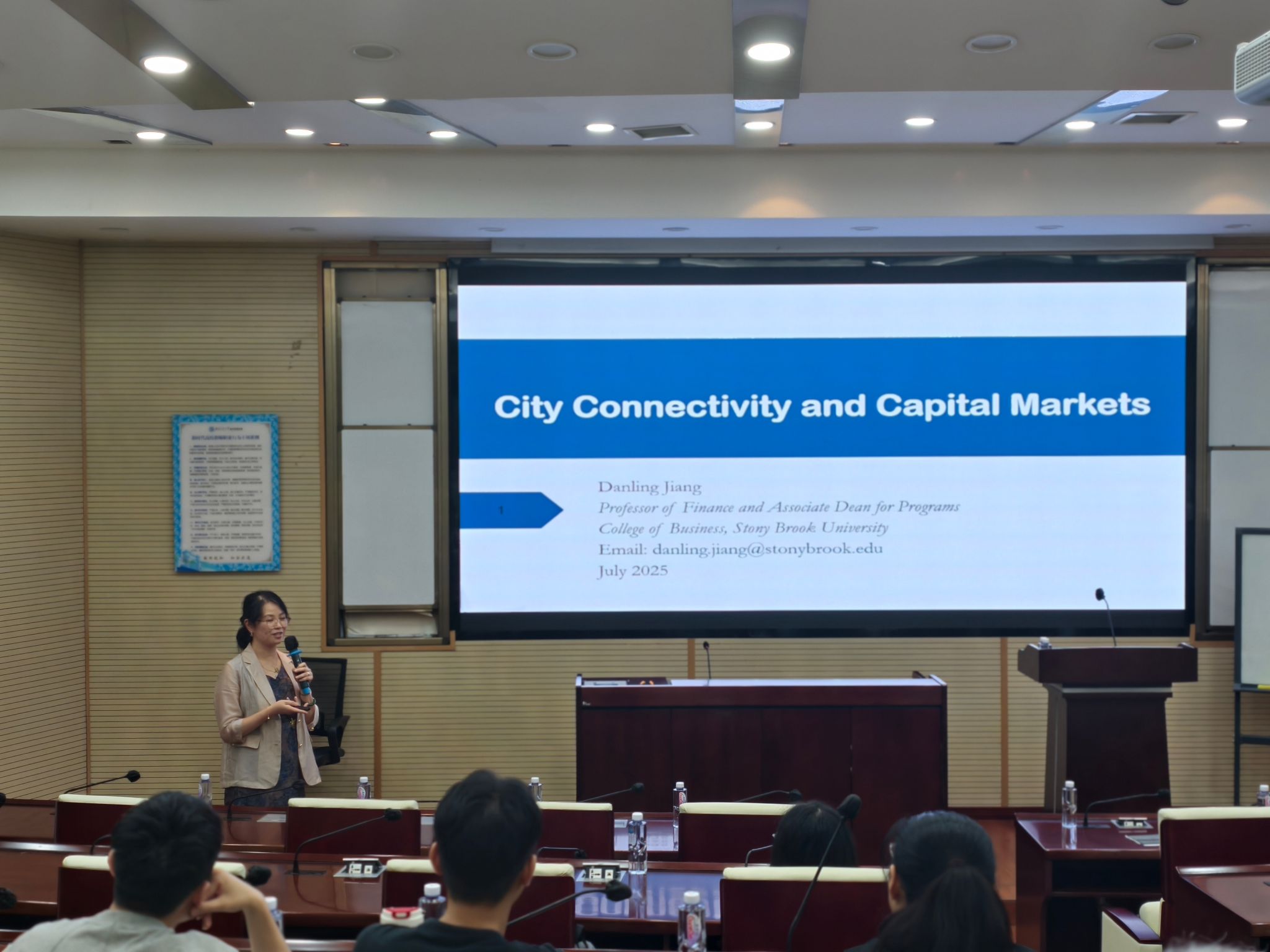 2025年7月7日下午,美国纽约州立大学石溪分校教授、西南交通大学扬华讲座教授蒋丹凌应邀在九里校区零号楼0204室开展题为“City Connectivity and Capital Markets”的学术报告,金融与财务学系主任董大勇教授主持了此次学术活动。董大勇教授介绍了蒋丹凌教授的学术背景及研究成果,并对蒋丹凌教授的到来表示热烈的欢迎。学院金融与财务学系黄登仕教授、朱宏泉教授等近50余名师生参加了此次活动。