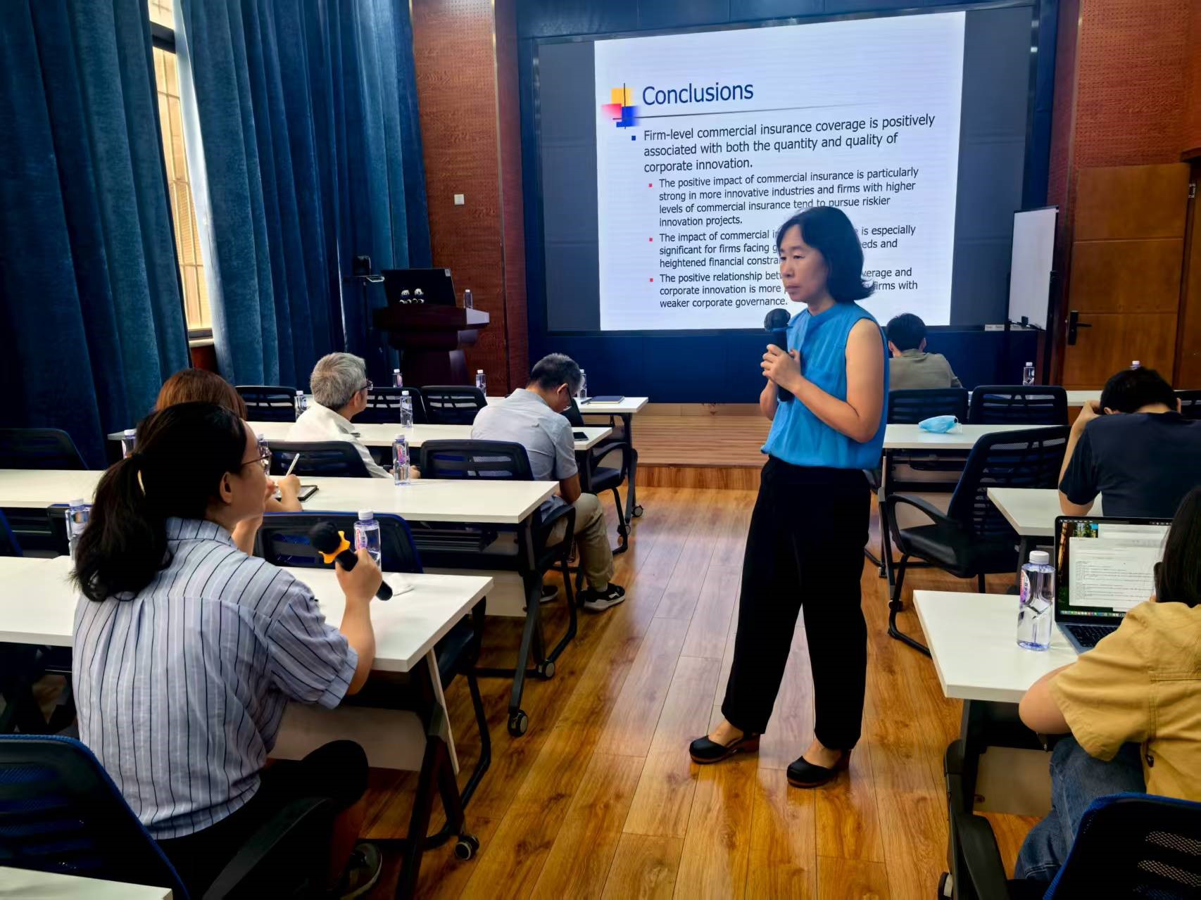 讲座最后,高老师与现场师生展开热烈互动,并就大家的问题给予了耐心细致的解答。此次讲座内容扎实,不仅加深了师生们对商业保险覆盖与企业创新活动的关系理解,也为相关领域的研究提供了有力启发。