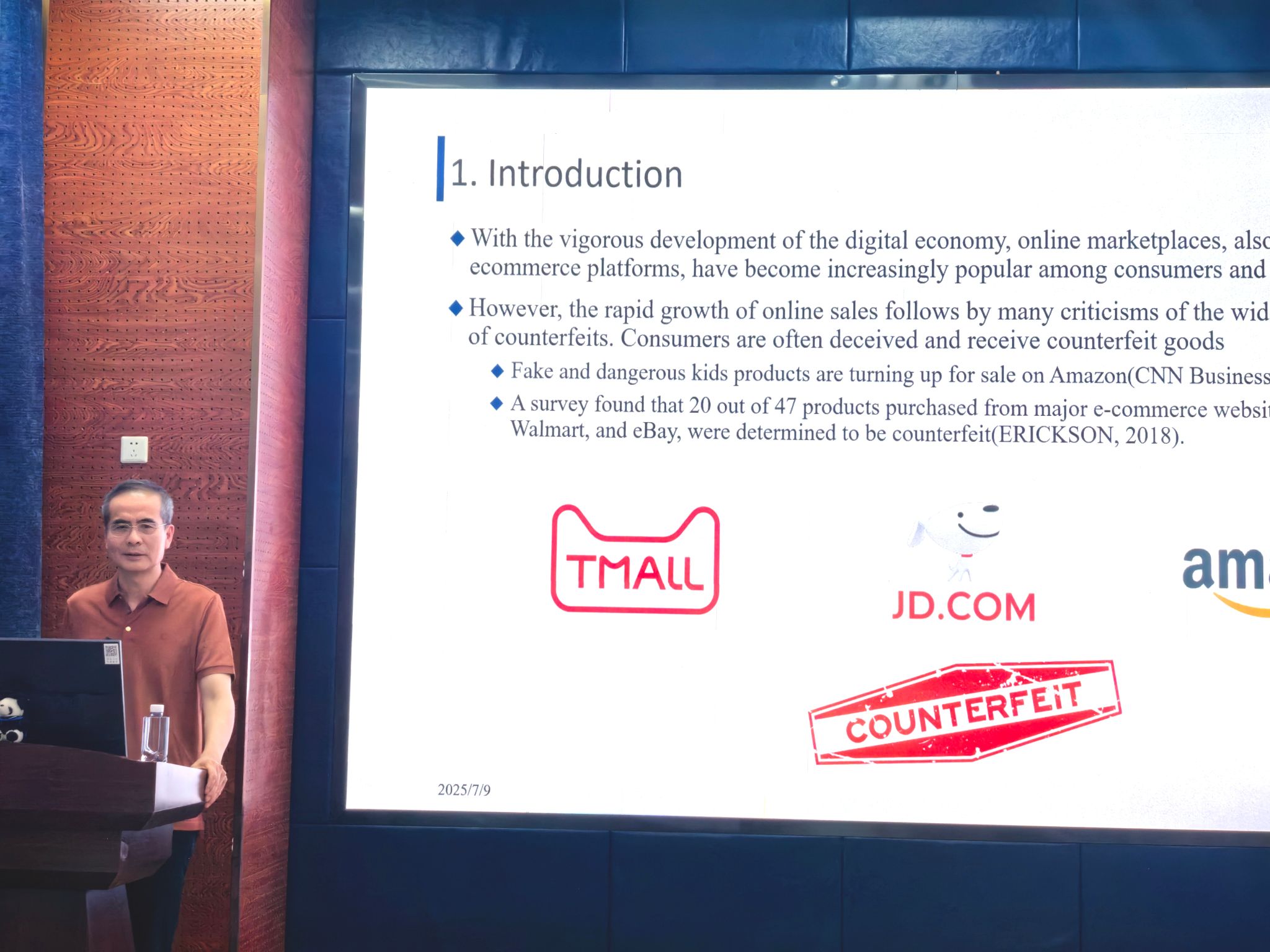 讲座伊始,聂佳佳教授对岳晓航教授的学术背景和研究成果作了简要介绍,并代表学院对其到访表示热烈欢迎。随后,岳晓航教授围绕电商平台的打假策略分享了其最新研究成果,重点探讨了在电商环境中平台、品牌方与在线假冒者之间的复杂博弈关系。