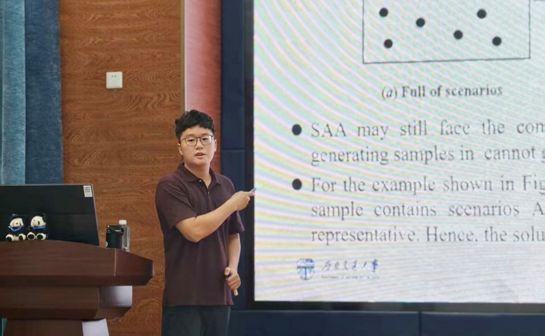 胡少龙老师带来题为《基于情景聚类的优化算法设计——以求解两阶段随机规划模型为例》的精彩讲座。此次讲座聚焦应急物流网络中的选址-库存联合决策问题,运用两阶段随机规划处理不确定性。为克服该规划因情景众多导致的计算难题,讲座重点介绍了结合情景聚类等改进方法,通过聚合相似情景有效提升求解效率。