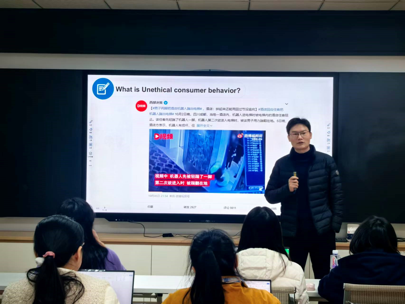 本次讲座围绕雷老师发表于国际服务研究领域权威期刊《Journal of Service Research》的研究成果展开,论文主题为 “Unethical Consumer Behavior Following Artificial Intelligence Agent Encounters: The Differential Effect of AI Agent Roles and Its Boundary Conditions”。讲座中,雷老师深入解析了研究的初衷与核心动机,系统阐释研究依托的理论框架与采用的科学方法,并结合自身经历分享论文投稿过程中面临的挑战、关键问题及实用解决策略,为与会师生的学术研究与论文发表提供宝贵参考。
