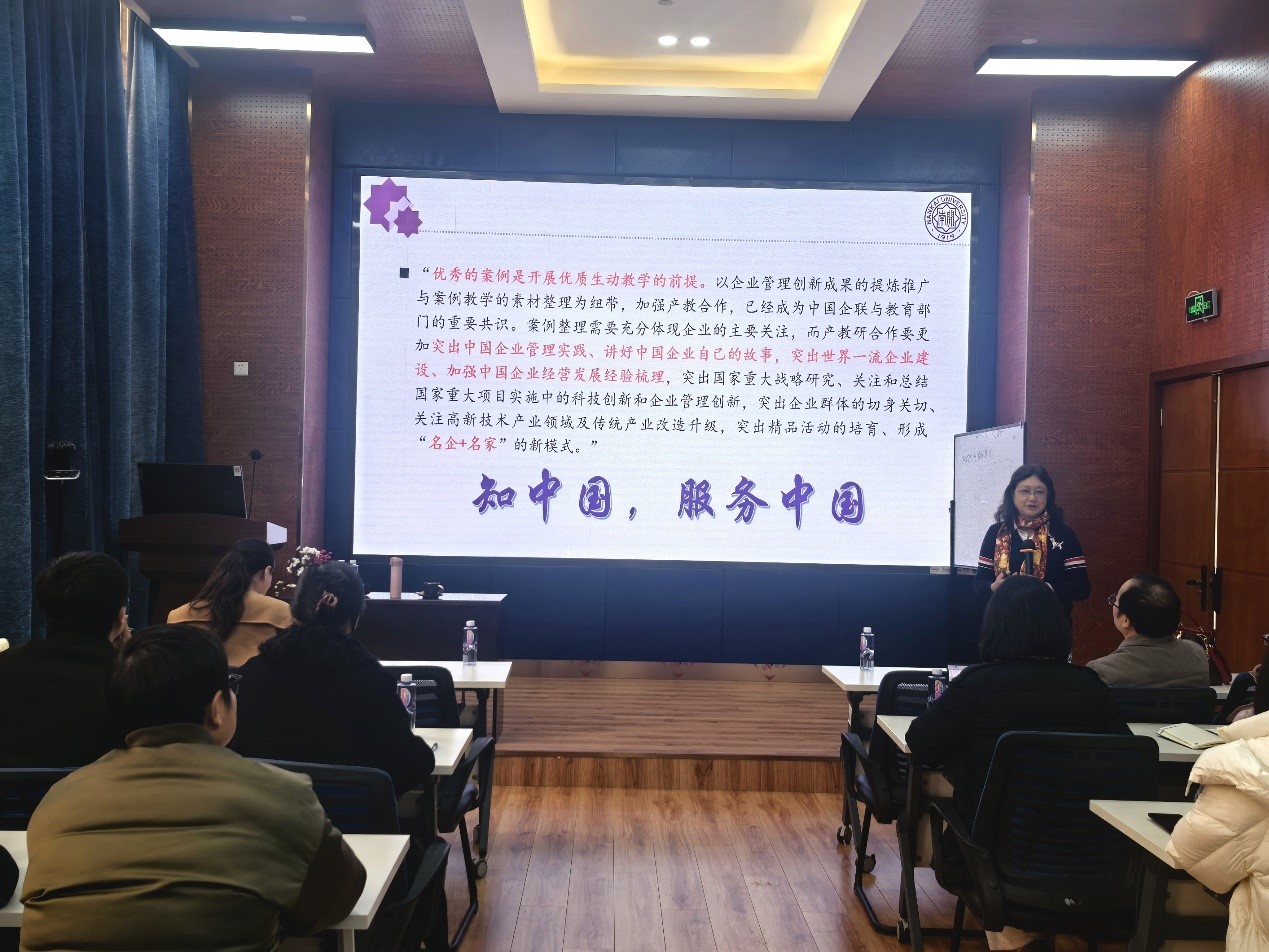 随后,许教授结合其在市场营销、服务管理、品牌管理以及国际企业管理与风险管理等领域的长期研究与案例开发经验,系统梳理了数字经济时代企业管理与营销创新案例的选题思路、素材整理与结构搭建方法,并强调应强化产教融合与校企协同,通过规范的研究设计与严谨的证据链条,提升案例的可信度、可教学性与可推广性。她指出,优秀案例的形成离不开对企业实践的持续跟踪与深度访谈,也离不开对“现象—机制—理论—启示”逻辑链的清晰呈现,从而使案例能够有效服务于课堂讨论与管理能力培养。