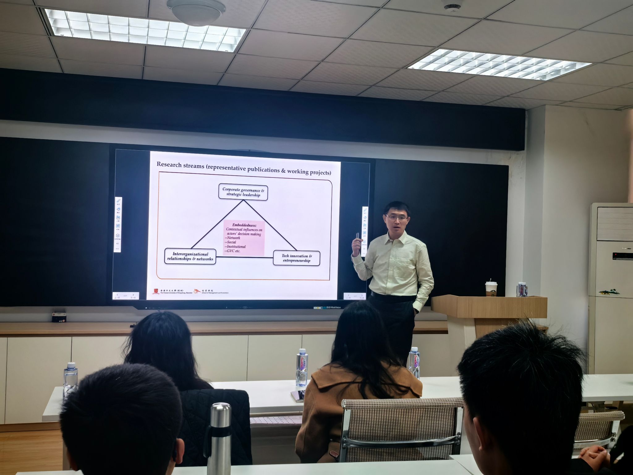 创新创业与管理学系陈轩瑾老师主持,学院部分师生参加了此次活动。讲座伊始,陈老师介绍了姜老师的学术背景与成就,并对姜老师的到来表示热烈欢迎。