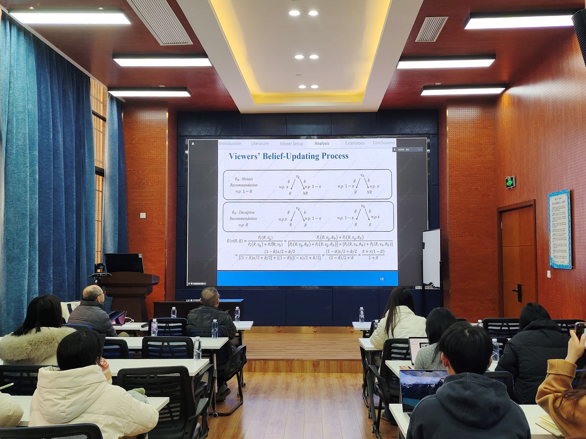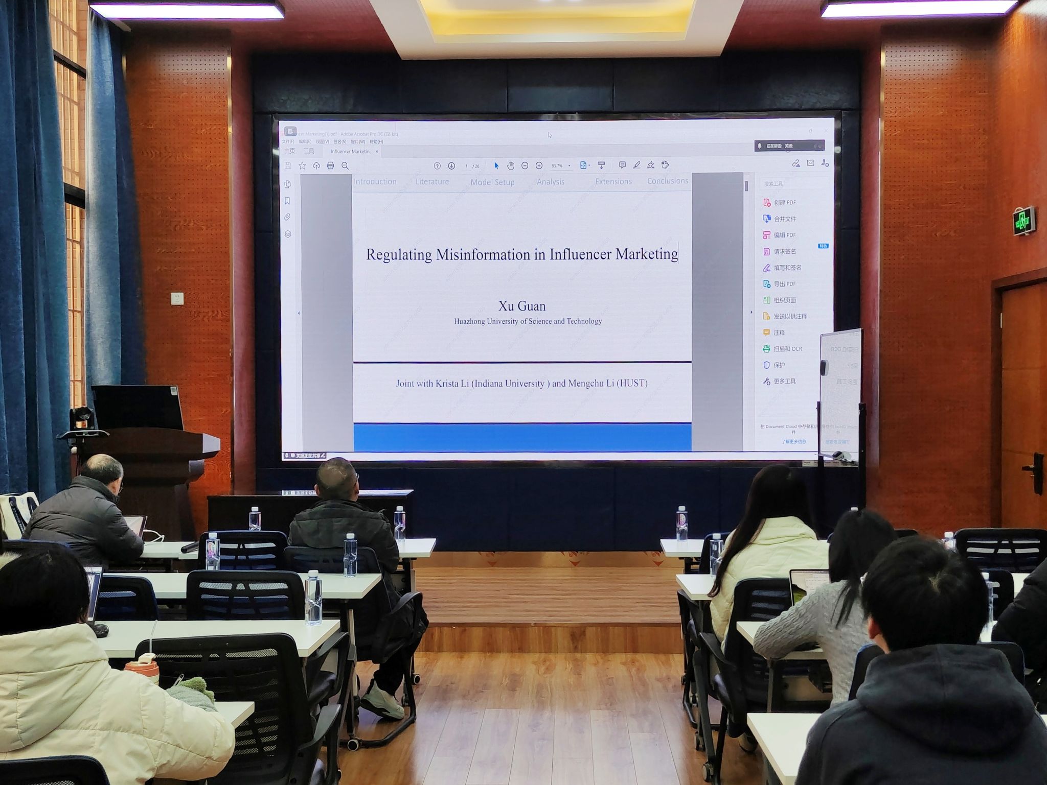 师生作题为“Regulating Misinformation in Influencer Marketing”的学术讲座。本次讲座由学院副院长聂佳佳教授主持,学院多位教师及学生参与。讲座伊始,聂佳佳副院长简要介绍了关旭教授的学术背景与研究成果,并代表学院对关教授表示诚挚感谢。