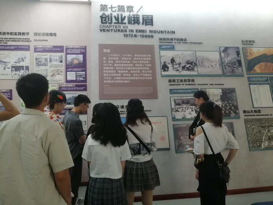 5月27日下午三点,支部成员于犀浦校区建党100周年展前集合,随后大家便一起前往校史馆。西南交通大学校史馆于2016年5月13日正式开馆。校史馆馆名由沈志云院士亲笔题写,全馆面积4200平米,常规展厅里面涵盖了榆关始创、复校唐山、成就斐然、烽火薪传、迎接曙光、砥砺前行、创业峨眉、蓉城新篇等校史沿革8个部分以及办学成果展和杰出校友展。