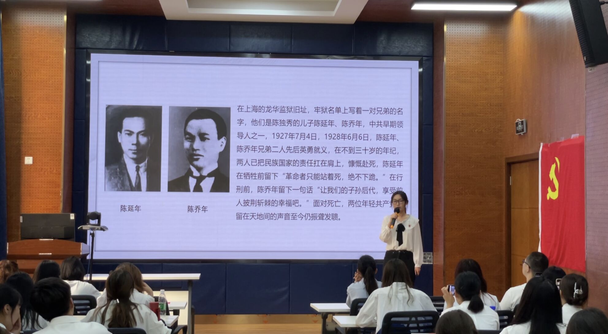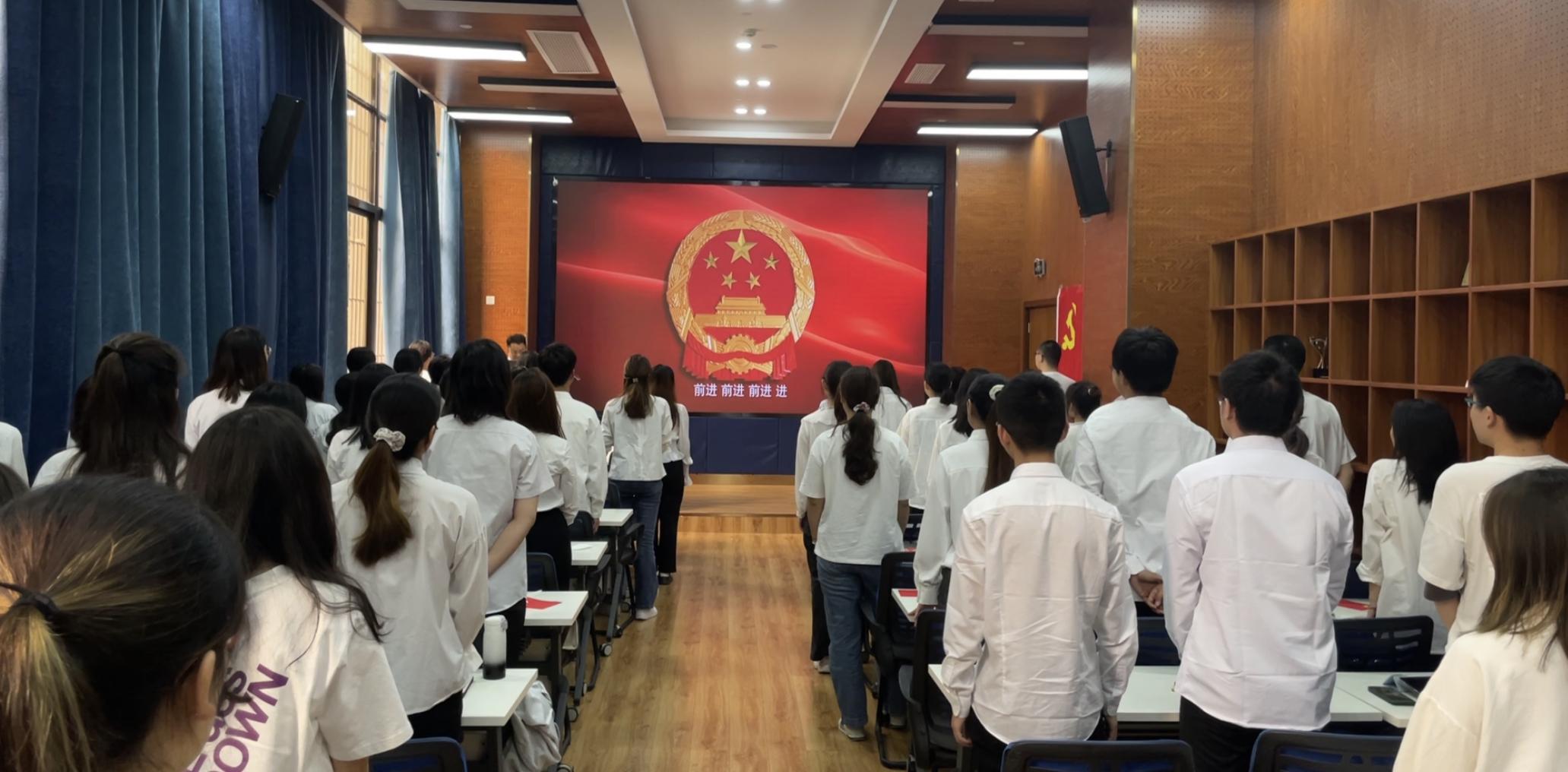 主题党日活动正式开始,党支部全体成员起立,奏唱国歌。