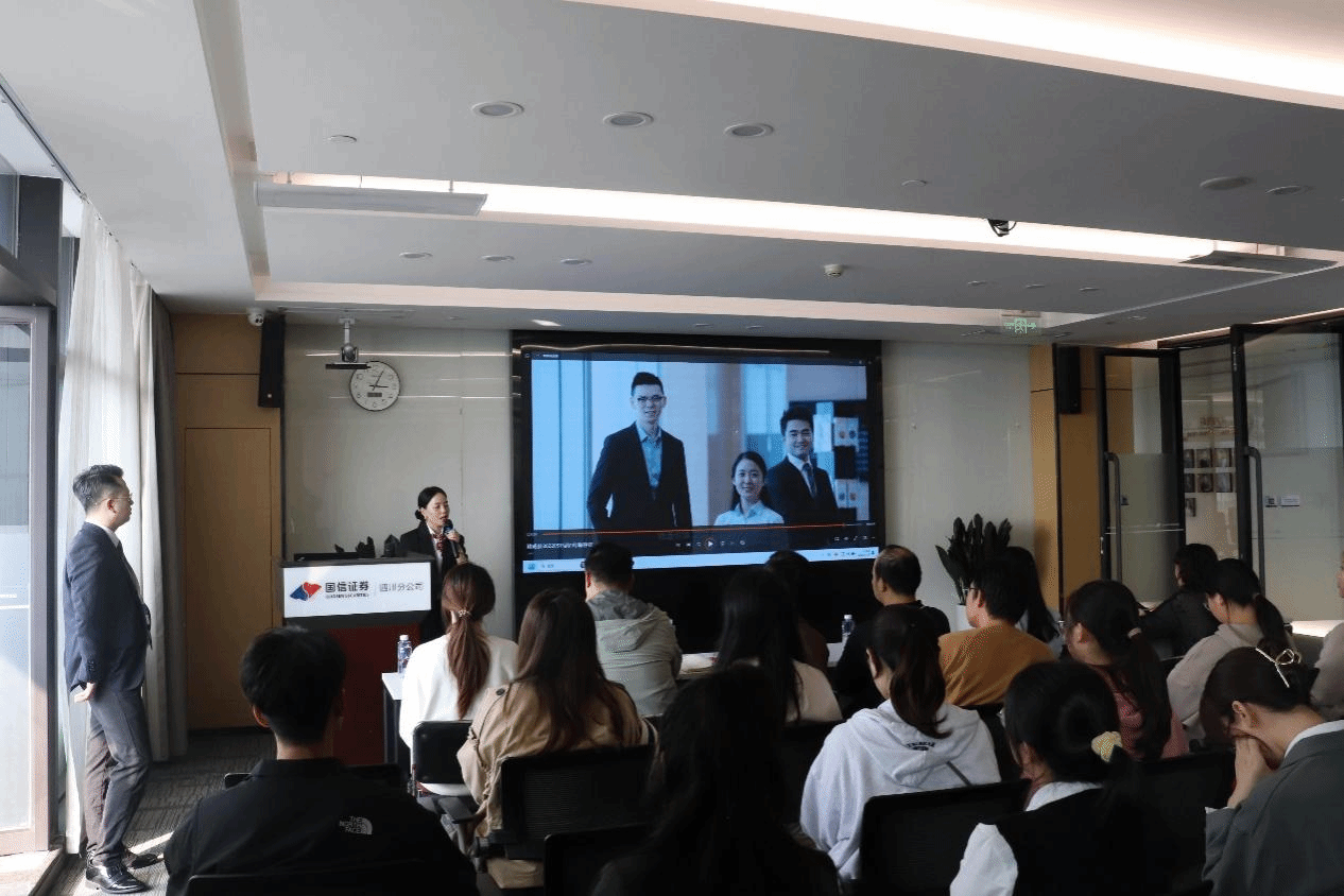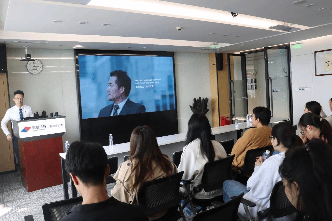 师生的到来表示热烈欢迎。随后,大家在工作人员的带领下进入会议室落座,国信证券理财三部的周圆皓经理简要介绍了此次活动的流程,本次党建共建活动正式开始。