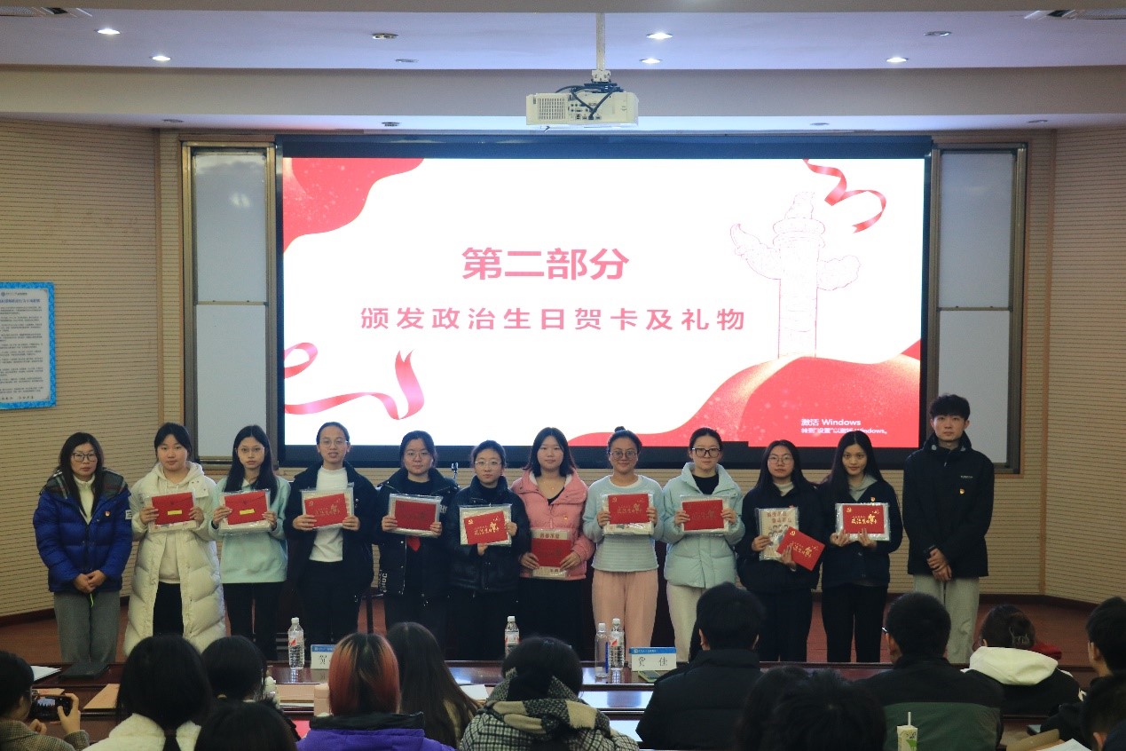 本科第一党支部开展了冬季政治生日会。党员代表发言,表达了作为青年党员应当注重提升自我能力,坚定理想信念,为社会发展出力。支部书记贾佳讲话,寄语全体党员坚守初心、勇担使命,在新时代征程中砥砺前行,并为本期党员同志颁发政治生日贺卡及礼物。在支部书记的带领下,全体党员共同重温了入党誓词,再次深刻感受到了入党时的初心和使命,坚定了为共产主义事业奋斗终身的理想信念。