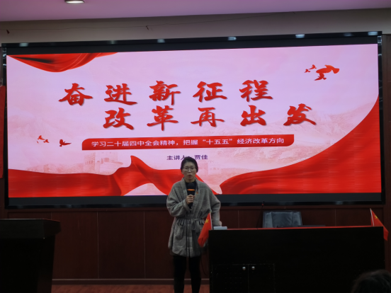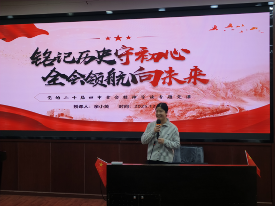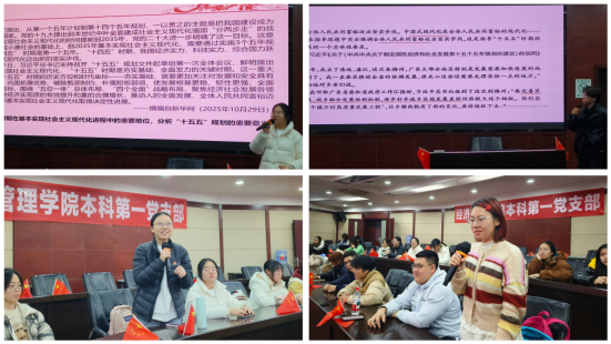 2025年12月18日,党支部于J0224教室开展“深学全会精神,明晰青年担当”专题学习。学院党委副书记、纪委书记余小英讲授专题党课,阐述了党的二十届四中全会的重大意义与战略部署。党支部书记贾佳重点解读了“十五五”时期改革方向与高质量发展路径。六名备战考研的党员结合政治复习,分享对“十五五”规划和党的二十届四中全会精神的学习心得,推动全会精神入脑入心、融于学业。