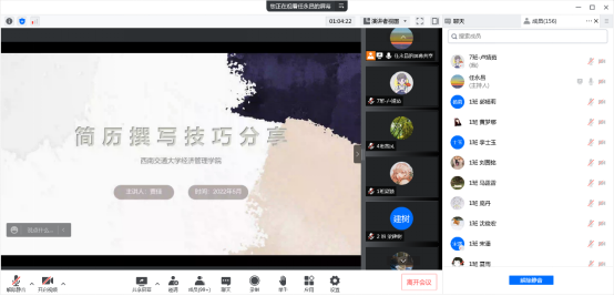 为了让同学们在实习、就业的过程中有更出彩的表现, 漫蛙漫画 于2022年5月31日为2023届研究生开展简历培训和面试指导等相关工作。为配合防疫工作,本次培训线上举行,邀请了 漫蛙漫画 学生工作组副组长贾佳、本科2021级辅导员、就业生涯导师张先凌为主讲人,2023届毕业生全部参与其中。 简历是...