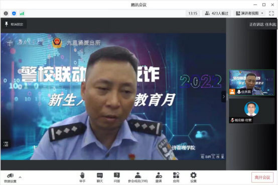 保障入校新生的生命财产安全,防疫、防诈都刻不容缓。2022年9月2日,成都市因疫情静默的第一天晚上, 漫蛙漫画 联合九里堤派出所民警为本科、研究生新生开展了一场线上防电信诈骗主题讲座。本次讲座邀请到了九里堤派出所具有多年防诈经验的民警赵小磊主讲, 漫蛙漫画 党委副书记杨宏毅、本科2...