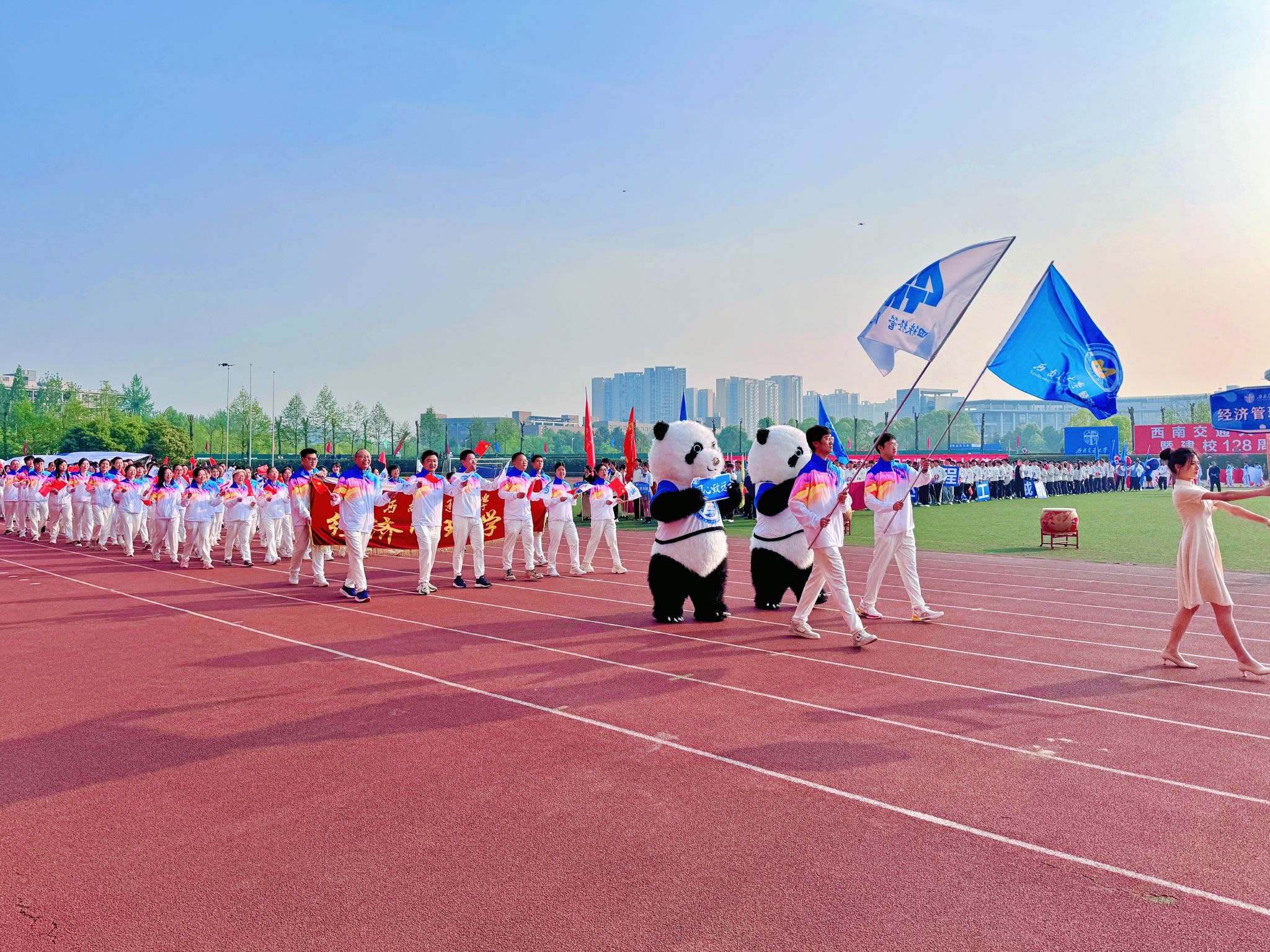2024年4月12号早上8:30,西南交通大学第123届运动会暨建校128周年校庆运动会开幕式于西南交通大学犀浦校区北区体育场顺利举行。 漫蛙漫画 代表队由学院党政领导带领,“他们秉持格物致知、和合共进之院训,绘就立足交通、雄踞西部之蓝图,他们步履铿锵、昂扬进发,携手欢歌谱新篇!”在主持人的介...